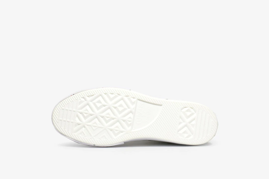 These Converse Renew Chuck 70 Hi “Redux Scrap” follow an environmentally conscious construction with the amount of parts it takes to build these Chucks cut by almost half.ย New scrap punch material uses an innovative method of make, where industrial waste is regenerated, bringing new life and expression to what would otherwise be disposed.ย Converse Renew branding is featured on the license plate, heel logo, sockliner, and inside on the tongue label.