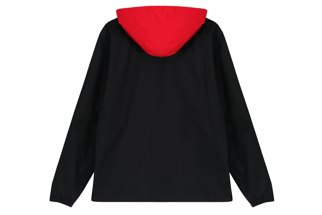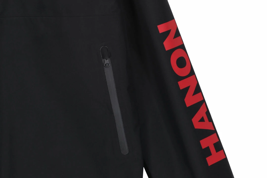 For Autumn Winter 18 we debut our Coach Jacket as part of our Gore-Tex Research Project. Produced from Gore-tex’s Paclite technology offering an lightweight construction that keeps out you cool in demanding activities and warm when the temperature cools. Offered here in a Black &Red makeup with taped seams and zips. HANON & Gore-Tex branding appears via a heat transfer on the arms and via woven labels in the lining. A detachable hood and elasticated cuffs ensure comfort and versatility.