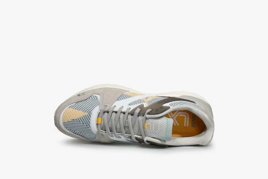 Soft microfiber and premium leathers combine with mesh detailing and knitted panels to make up the deconstructed upper of the shoe. Moulded silicone underlays and hi-tec reflective lacing come together with an overblown REACH outsole to amplify the collectionโs athletic look and feel.ย