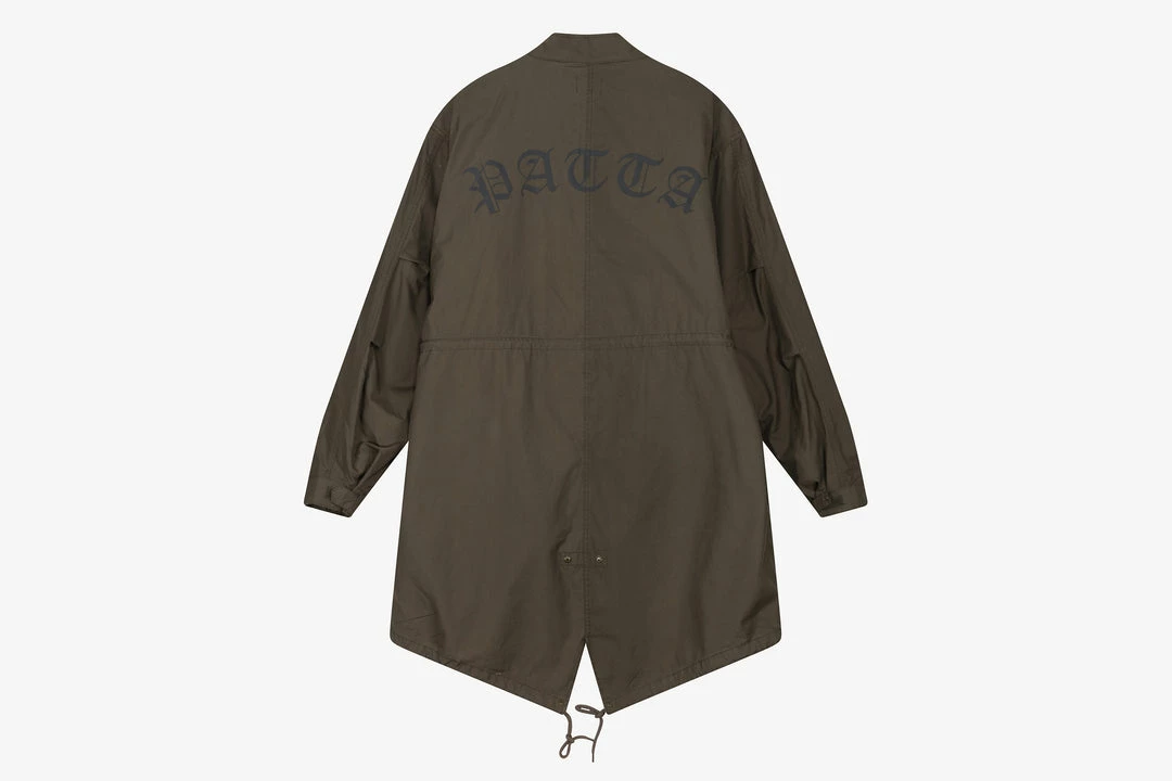 PATTA is back at HANON for AW22Β and oh boy does it look & feel so good.Β Classic concoctions mixed with brand new artwork and designs that will keep you cosy for the winter months ahead. From miniatureΒ embroidery to boldΒ knitted constructions, PATTA continues to focus on creating high quality apparel that is guaranteed to stand the test of time.Β ThisΒ Flower Fishtail Parka is crafted from 100% cotton twill andΒ equipped with a YKK metal main zipper with a branded puller, cuffs with velcro closure and a 100% polyester interior. Military side pockets with hidden YKK snap buttons are used as storage and the bottom hem and waist are adjusted with cotton circular cords. Complete with velcro patch branding at the chest as well as screen-printed typographic branding across the back.Β The liner is attached to the outer using military four hole buttons. The innerΒ features two nylon jet pockets and is adorned with a PATTA Wall Flower artwork allover with a jacquard finish and a cotton twill PATTA script logo embroidered on the back panel.Β