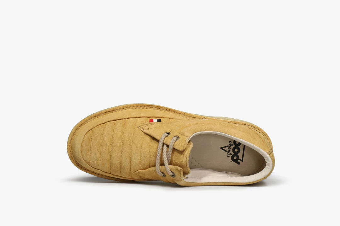 Pod was founded in London in 1976 and the brands name is an acronym derived from ‘Product of Desire’.Β The Jagger is Pod’s most iconic design which was first produced in 1976. The unique features of this silhouette include heavy mudguard twin stitching, a crepe sole and a stitch-out design, which creates a versatile, comfortable, and stylish shoe.