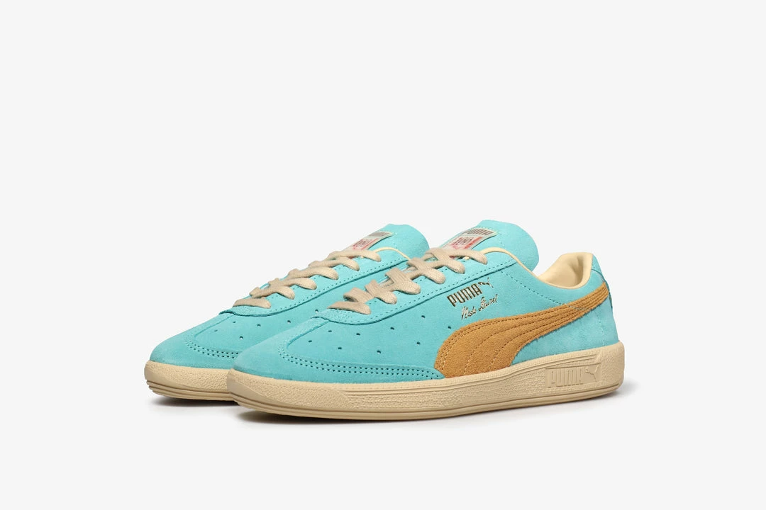 First released in 1978, the signature shoe of handball legend Vlado Stenzel, nicknamed “The Magician” returns. This latest iterationΒ draws inspiration from European currencies of the past with this pair based on the French Franc – France’s legal tender before the Euro. The Vlado Stenzel signature shoe is the definition ofΒ a classicΒ featuringΒ the iconic T-toe overlay, perforations on the toe and the distinctive Vlado Stenzel signature in gold foil on the lateral side of the shoe. Textured suede makes up the formstrip of the shoe, giving some contrast and a classic look.Β