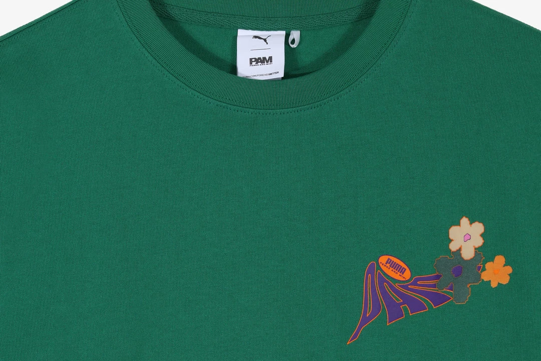 P.A.M. are back with another collab this time with the big cat Puma.Β Established in Melbourne in 2000, Perks and Mini (also known as PAM) creates cutting-edge streetwear pieces that fuse art, fashion, and graphic design. The first-ever Puma x PAM collaboration features colourful, outdoor-inspired silhouettes ready for endless exploration. The main feature of this cotton tee is the collage style print on the back, a mix of illustration and scanned imagery that incorporates Puma and PAM branding. Warm hues of the photographic content clash with the flat colours of the illustrative elements, creatingΒ a playful and intriguing image. On the front of the garment a collaborative logo is found on the chest, complementitive to the large print on the back.