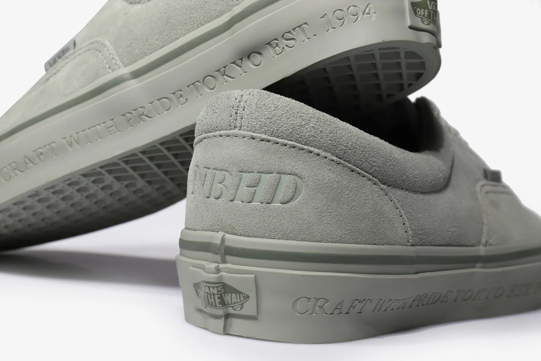 Here we have the Era 95 DX constructed in a premium suede covering the upper with a highly satisfying handle and feel offered in a delicate ‘washed’ sage green or subtle ash grey. Detailing on the upper arrives via tonal woven Vans flag labels as well as an emboss and print of Neighborhood’s “Urban Classics” & “NBHD” shorthand on the heel wrap. Down below a tonal colour-matched midsole runs with further NBHD branding etched into the unit. A set of subtly co-branded leather footbeds sign things off.